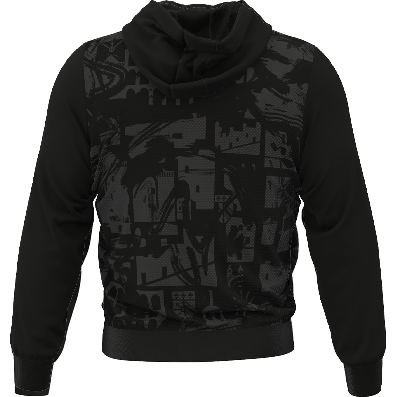 Le derrière, en tissu Full, offre un graphisme monochrome dans les tons du gris et du noir. Un contraste conçu pour apporter du dynamisme et de l’originalité au vêtement, soulignant le style unique de la Ville de Chaumont.